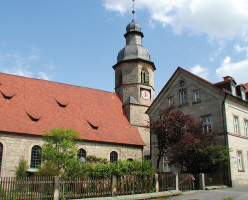 Direkt am Kirchplatz steht ein sehr schönes Fachwerkhaus, einst Schenkstatt „Zu den sieben Staffeln“ genannt, welches bis ins Mittelalter zurück gehen soll. Es beherbergt eines der ältesten Gasthäuser in Bayern, den Gasthof Häublein.
