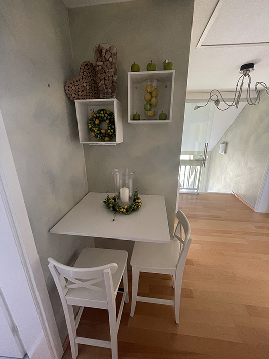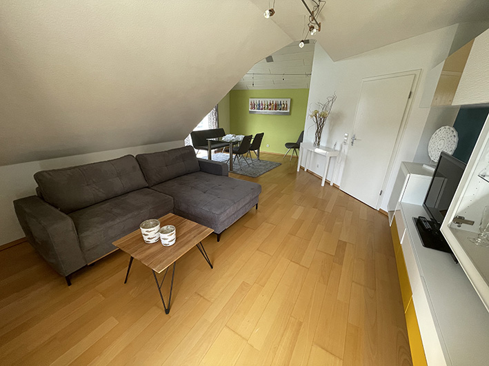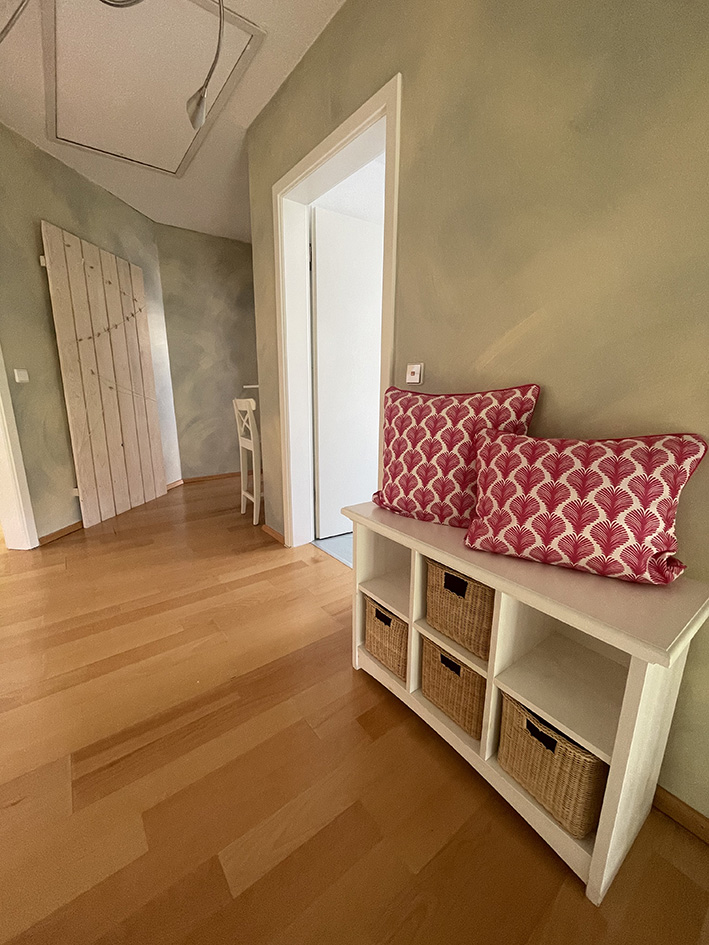 Wir bieten Ihnen eine moderne, lichtdurchflutete und 2021 teils sanierte sowie neu eingerichtete Wohnung. Die komfortable Wohnung mit liebevoller Einrichtung befindet sich im 1. Obergeschoss.