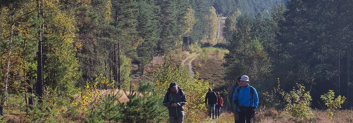 Den Kolonnenweg folgen wir nach rechts für eine ganze Weile und verlassen ihn gemeinsam mit dem Burgenweg nach 1,3 km wieder in südliche Richtung, passieren erneut die einstige innerdeutsche Grenze und treten wieder in die weitläufigen Kiefernforste ein. An der nächsten Kreuzung verlässt uns der Burgenweg nach rechts und wir folgen den Rundwegen KC 33 unde KC 34 bis zum Ortsrand von Bächlein.