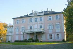 Nach einer Einkehr machen wir uns auf den Weg zurück nach Mitwitz. Hierzu durchqueren wir das Schafgatter, genießen noch mal den herrlichen Panoramablick zur rechten und laufen nach rund 200 m wieder in den Wald. Rechts finden wir einen Grenzstein, der die Wappen der ehemaligen Grundherren aufweist. Wir queren die Forstwirtschaftsstraße und kommen nach rund 10 Minuten Gehzeit am „Häubleinsteich“ vorbei. Nach weiteren rund 300 m biegen wir nach links in den Ort ab. Von hier oben, am Vereinsheim des Kleintierzuchtvereins, hat man einen tollen Blick Richtung Neustadt bei Coburg mit dem markanten „Muppberg“. Bei klarem Wetter kann man die riesige Antenne des Senders „Sonneberg“ erkennen. Jetzt geht es in den Ort Mitwitz und nach rund 400 m gehen wir links die Kirchstraße hoch und kommen alsbald am „Oberen Schloss“ vorbei. Leider ist dieses nicht zu besichtigen, es ist in Privatbesitz. Wie alt dieses „Obere Schloss“ ist, ist nicht genau bekannt. Ludwig Freiherr von Würtzburg (1845 – 1922), der Reichsrat, wohnte mit seiner Familie vorübergehend hier. Zuletzt wurde es immer in den Sommermonaten von der Mitwitzer Ehrenbürgerin Baronesse Anne-Marie von Cramer-Klett bewohnt. Im Schlosspark, welcher sich hinter dem Schloss befindet, ist eine Grabkapelle zu finden. Diese ließ einst Ludwig Freiherr von Würtzburg für seinen 1915 im Ersten Weltkrieg gefallenen Sohn Edmund errichten. In der Nähe der Grabkapelle liegen die Mitwitzer Ehrenbürgerin Baronesse Regina und Anne-Marie von Cramer-Klett begraben. Die Kapelle ist leider nicht zu besichtigen.